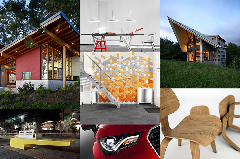 During the form development phase, I drew on architecture and other mid-century furniture for inspiration. Due to its connection to mid-century modern design and ease of use, I identified bendable plywood as my main material. I also aimed to incorporate mixed materials into the final design. A final consideration was to craft a truly handcrafted piece by avoiding using hardware. I then moved into the concept phase.